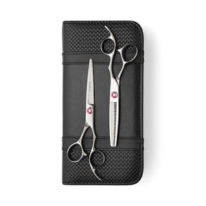 very nice scissors, cut so smoothly and are very sharp, also comes wih a razor, refill razor blades and finger grips which is great. love love love